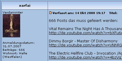 Nachdem die Welt 1998 überdauert hat, suchen 666-und-Weltuntergangs-Fanatiker nach neuen Interpretationen - stimmt unser Kalender auch wirklich? - zur Not ist halt 1998 der Antichrist geboren (wird ja wohl genug Schreckens-Geburten in diesem Jahr gegeben haben, was!?). Dann haben wir ja noch ein bisschen Zeit (zum Reinsteigern), bis der gute Junge erwachsen ist...