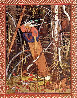 osteuropäische Hexe, gilt zuweilen als Verkörperung des Winters. Sie lebt in einem großen Wald und ernährt sich von Menschenfleisch. Der Zaun um ihr Haus ist mit Menschenköpfen gespickt