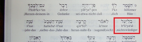 So wird auch an den genannten Bibelstellen das Wort "Belial" nicht als Eigenname verwendet, sondern als Metapher: