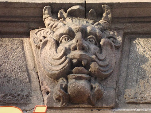 In der Ludwigstraße findet sich über dem Eingang einer Parfümerie dieser Teufelskopf: