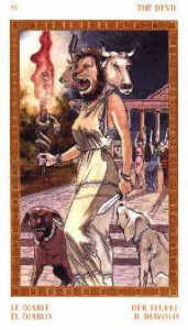 Während der Teufel in den anderen Tarot-Decks oft für den Verfall und die Sklaverei an das Materielle steht, gilt er hier als Sieg des Geistes über diese Materie, der die dunklen Kräfte im Menschen mittels Moral relativiert.
