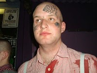 Ein Jesus-Skin torkelte draußen in der Bar rum. Er versuchte, mich blöd anzumachen, aber leider war er so derartig besoffen, dass weder ein vernünftiger, noch überhaupt irgendein verständlicher Wortwechsel mit ihm möglich war. Er bot mir dann am Ende nen Zug von seinem Joint an, aber ich rauch nicht, nein danke.
