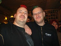 Der Sänger von Atemnot, der mit den grünen Haaren vorn, ist ein gebürtiger Nürnberger und ein Kumpel vom Ino. Er widmete dann einen seiner Songs dem "schmächtigen Herrn hier vorn", nämlich dem Ino. Der wurde gleich 2 Köpfe größer!
