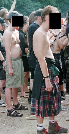 Der da rechts arbeitet ganz bestimmt auf dem Bau! Leider scheint er vor dem Konzert nicht mehr heim gekommen zu sein, um sich umzuziehen. Sogar die Stucker-Mütze hat er noch auf. Die Hosenbeine hat er nach typischen Bauerntrampeldesign in seine Sicherheitsschuhe hineingestopft.