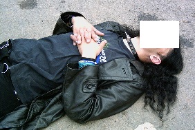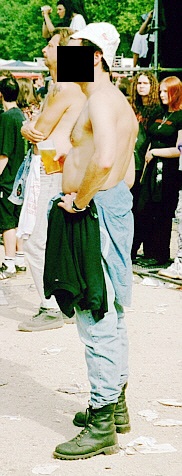 | Hier der Durchschnittsbesoffene: Er liegt in der Pampa rum, lässt sich das Gesicht beschmieren, mit Klopapier einwickeln und mit Müll dekorieren | Dagegen der Gothic-Metaler: Er sieht auch im Vollsuff noch aus wie ein sterbender Vampir | |