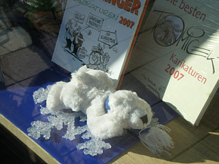 . In den Schaufenstern der Nürnberger Nachrichten, in denen unter der aktuellen Zeitung auch allerlei Artikel ausgestellt sind, tummeln sich die Eisbären.