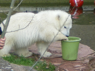 Im Namen des Eisbären kann man sich bei der Sparkasse ein Konto anlegen, dafür kriegt man dann einen Kuscheleisbären aus Plüsch und es gehen 10 Euro Futterbonus an den Tiergarten!