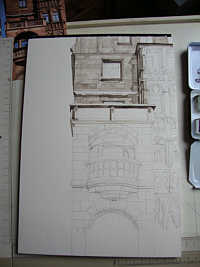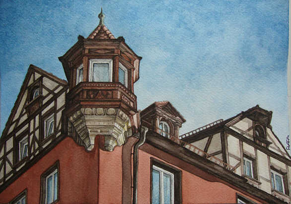 Nach den Häusern wollt ich dann mal wieder was Geschwungenes malen und knöpfte mir wieder den Schönen Brunnen vor.