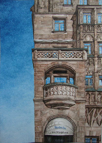 Da ich nun wieder etwas mehr Zeit habe und auch Lust dazu, habe ich wieder zu malen angefangen. Erst mal hab ich mich an Nürnberger Motiven orientiert, weil ich im Hinterstübchen hab, die Bilder eventuell zu verkaufen: