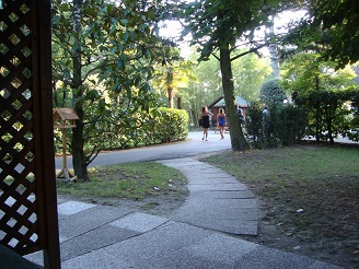 Der Klaus hat sich eine Klimaanlage installieren lassen! Ich hab auch eine, aber bloß noch heute, weil ab morgen geht's wieder ab in die Wildnis. Da bin ich wohl auch besser aufgehoben, denn unter all den Touristen hier fühl ich mich nicht ganz koscher. Grad wieder: Da hinten haben sie ein Abendprogramm, da singt einer und ein Kinderchor begleitet ihn und die Leute jubeln und klatschen mit. Das wär was für meine Oma gewesen, der hat sowas immer gefallen...