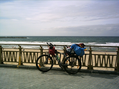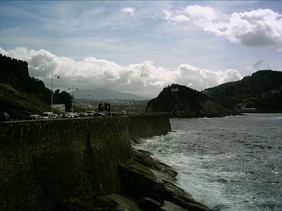Ich fuhr nach Irun, das ist gleich übergangslos die nächste Stadt, nur auf spanischem Boden. An der nächsten Tankstelle ließ ich erst mal ordentlich Luft in die Reifen: Zum Glück haben die dieselbe Ventilgröße wie bei uns. Satan-Ahriman meinte, ich sollte weiterfahren bis Donostia San Sebastian. Ich fragte mich ja echt, wo die Steigungen alle herkamen, denn das Kaff lag direkt am Meer. Die Autos rasten alle wie die Henker vorbei, ich konnte gar nicht rechts genug fahren, aber da hockten die ganzen Eidechsen und sonnten sich. Bis nach San Sebastian waren es ca. 20 km.