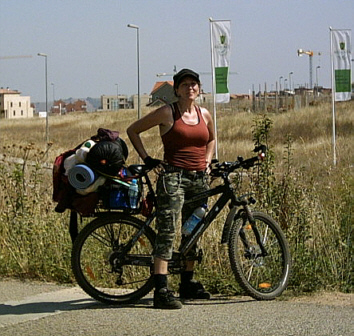 Ein Händler stand auch schon am Weg mit seinem Auto und packte seine Waren aus (Essen, Früchte, Melonen). Die machten da das volle Geschäft mit den Pilgern. Zuerst war der Fußweg noch asphaltiert, aber dann wurde es teilweise ne ganze schöne Holper-MTB-Strecke. Ich überholte die ganzen Wanderer aus der Herberge. Das war echt lustig, denn alle paar 100m ist einer "ola ola!" Irgendwann hatte ich sie dann alle gepackt.