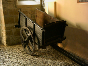 | Mittelalter und Moderne treffen sich in der historischen Herberge: links hinter dem Tor eine Internet-Ecke mit Breitbandanschluss - rechts ein Leiterwagen mit Pferde-Deichsel | |