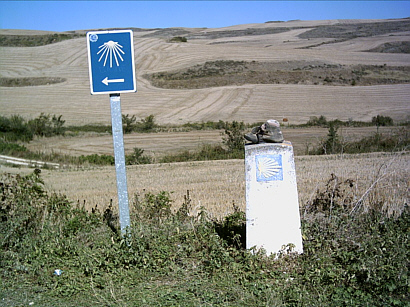| sehr "in" ist es unter Pilgern auch, den Weg mit ausgelatschten Wanderschuhen zu dekorieren | |