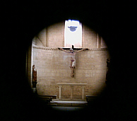 Die Kirche in Fromista war abgesperrt, denn ich war noch zu früh dran. Also hab ich durchs mittelalterliche Schlüsselloch fotografiert und richtig mittig den Balkensepp erwischt.