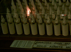 | Wenn man in einer spanischen Kirche ein Kerzchen anzünden will, schmeißt man 10ct in diesen Kasten und dann geht ein Lichtlein an - ja ja: alles vollelektronisch, hier |