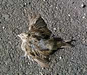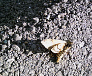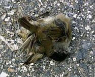 Ich setzte Musik auf und fuhr mit Dimmu Borgir weiter. Das war heut einfach wieder ein Scheiß-Tag! Ich fuhr dann teils doch wieder den Fußweg, aber war einfach anstrengend. Dann fuhr ich wieder Straße. Nun sah ich noch einen toten Schmetterling von ca. 8 cm Größe und beschloss ab sofort die Tierleichen zu fotografieren. Auch einen toten Spatz fand ich bald.