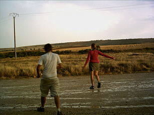 Ich kam durch Orbigo, über die historische Brücke. Dahinter traf ich doch glatt die Engländer von gestern aus der Leoner Kneipe wieder: Die Rentner-Bande war bis hierher mit ihrem schönen Bus gefahren und mussten nun wieder ganze 8 km wandern, worüber sie lauthals jammerten.