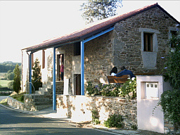 Ich fuhr weiter ins nächste Kuhkaff, Ligonde. Da war eine Albergue und ich checkte ein, kostete 6 Euro. War ein schönes, rustikales Haus. Waren nur eine Hand voll Pilger da (wo waren sie denn alle?), kriegte noch freie Wahl bei den Betten und nahm eines unten. Ich duschte mich, fotografierte das Rad im "Keller", schrieb Tagebuch, aß den Rest gar und legte mich dann ab.