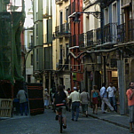 Ich fuhr nun das erste Mal den Fußweg und war ziemlich fasziniert von der Landschaft und den Absonderlichkeiten, wie z.B. den "Steinmännchen": aufgestapelte Kieseltürmchen, die die Pilger hier massenweise hinterließen. Der Weg war allerdings für Fahrräder nicht besonders geeignet und eine ziemliche Schinderei. Am Abend kam ich in der historischen Herberge in Santa Domingo an.