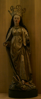 Die hölzerne Skulptur links stellt nicht Maria, sondern die heilige Margarethe dar. Sie stellt - noch dominant - siegreich dem Drachen den Fuß auf den Hals.